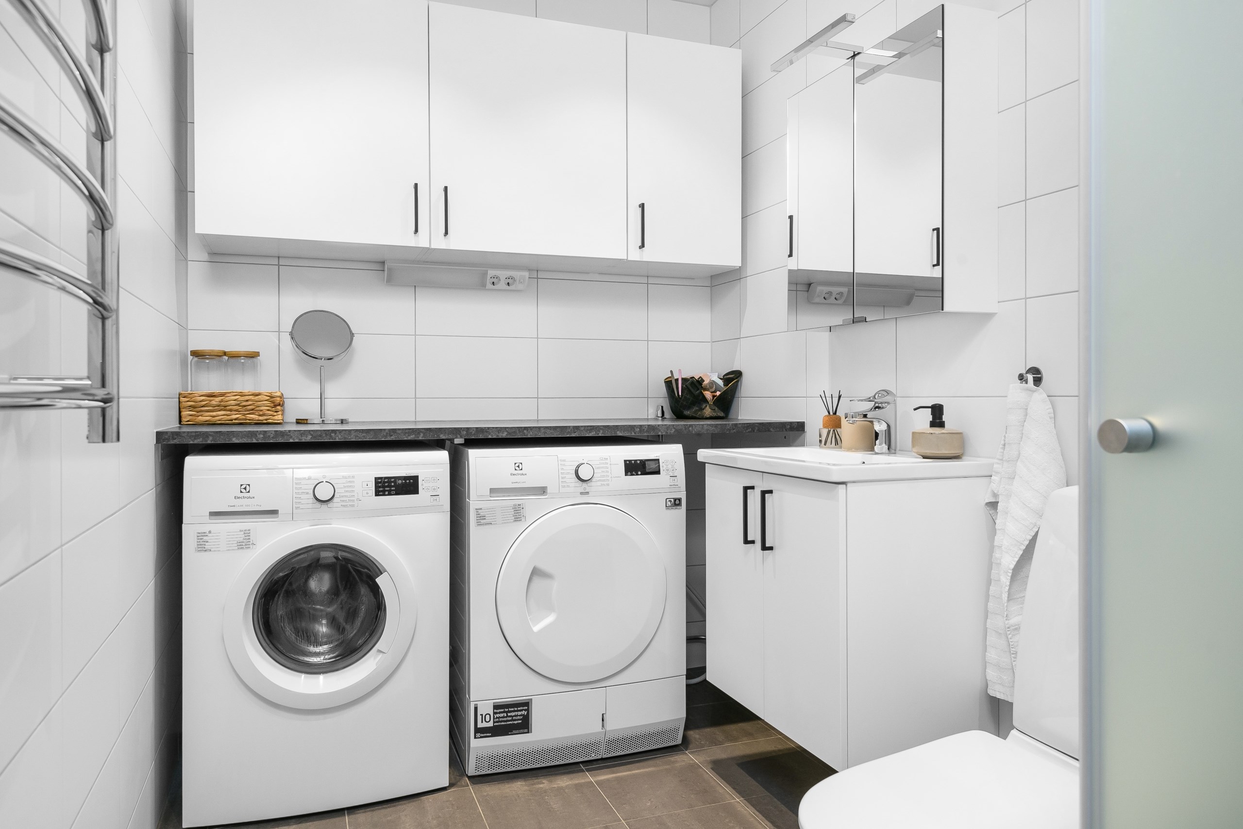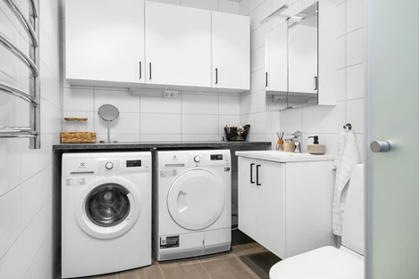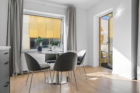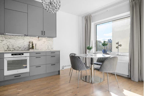 Här får man allt man kan önska i en enrummare. Högkvalitativt kök - fullutrustat i öppen planlösning med allrum där man har utgång till balkong. Stort helkaklat badrum med dusch samt tvättmaskin och torktumlare. Huset har hiss och alla bekvämligheter samt förråd i bottenplan. Parkering kan hyras i garage i intill liggande byggnad.