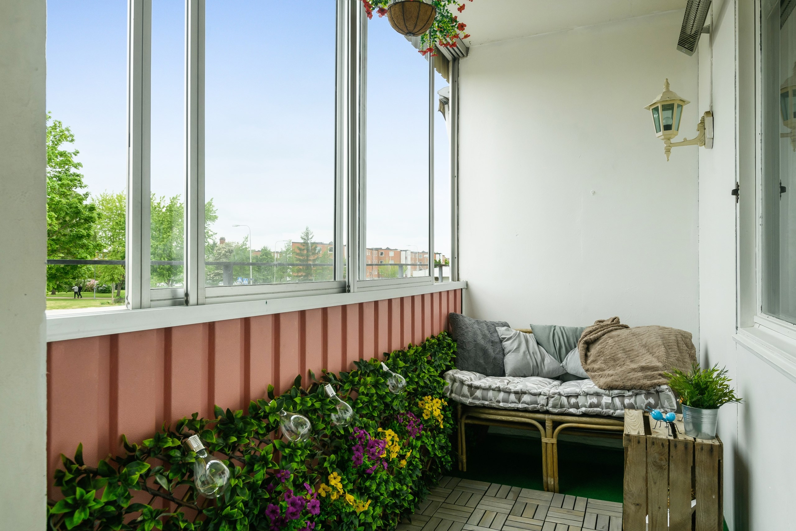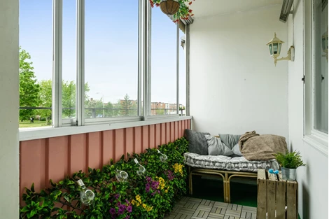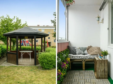 Två mysiga sovrum, varav det ena är större och öppnar upp till en inglasad balkong i väster—perfekt för att slappna av när dagen går mot sitt slut.